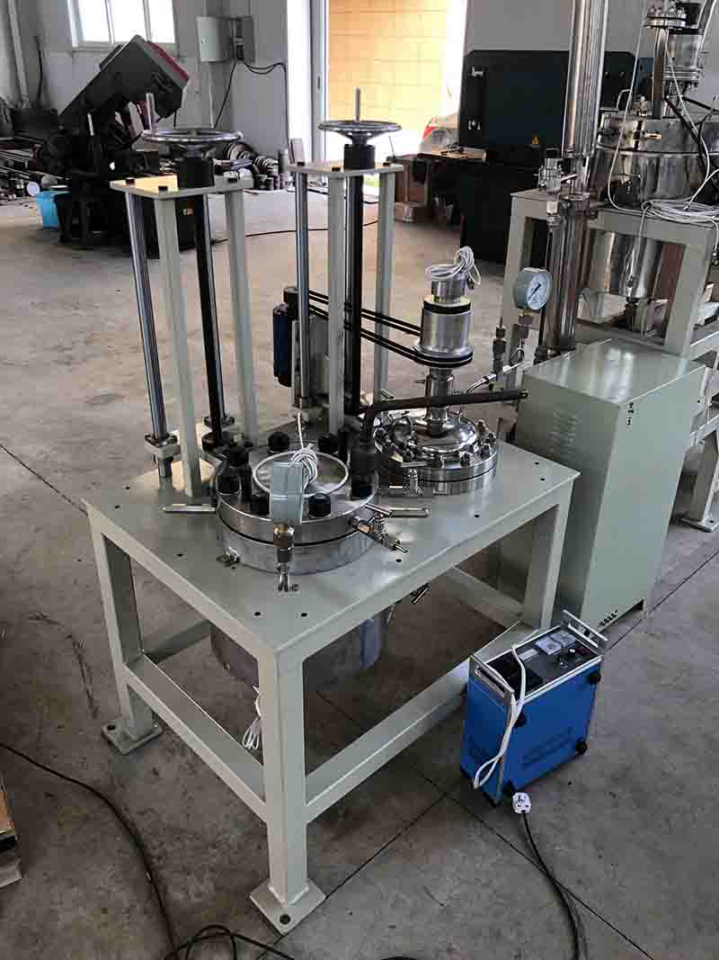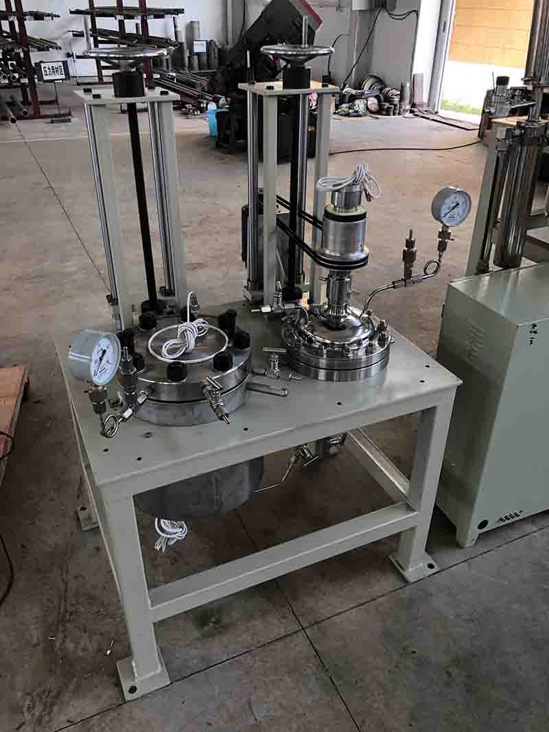 我公司為中南大學制作的6L實驗室反應釜。設備一采用磁力驅動攪拌器配推進式攪拌槳葉,設備一采用平蓋無攪拌帶加熱。制造材質為S30408。
