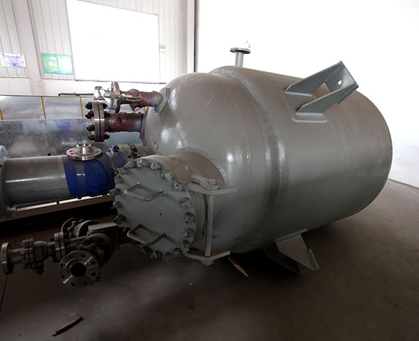 我公司為天津地區(qū)客戶制作的2000L加氫反應(yīng)釜。設(shè)備采用磁力驅(qū)動(dòng)攪拌器配自吸式攪拌槳葉,設(shè)計(jì)溫度達(dá)180℃,設(shè)計(jì)壓力為2.5MPa。制造材質(zhì)為不銹鋼S31603。設(shè)備配備11W防爆電機(jī)。轉(zhuǎn)速200r/min。釜內(nèi)配置冷卻水盤管。